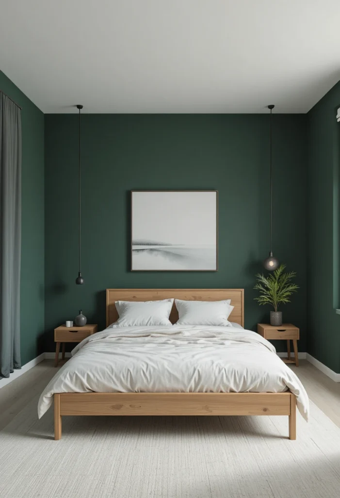 Keep accessories minimal but intentional. One large statement plant, maybe a simple pendant light, and quality bedding in neutral tones. The green does all the heavy lifting, so you don’t need much else. It’s minimalism with personality, which is honestly the best kind 🙂