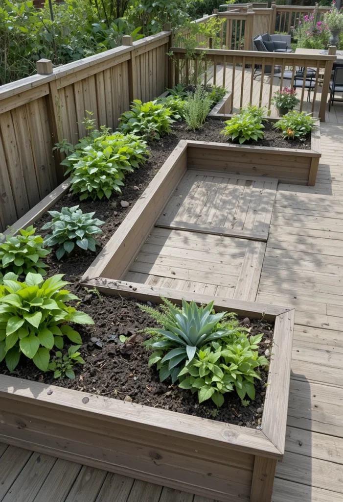 I built L-shaped raised beds around two sides of my deck using composite boards (they last forever). Fill them with premium soil and compost, then plant away. The improved drainage and soil conditions mean your plants thrive.